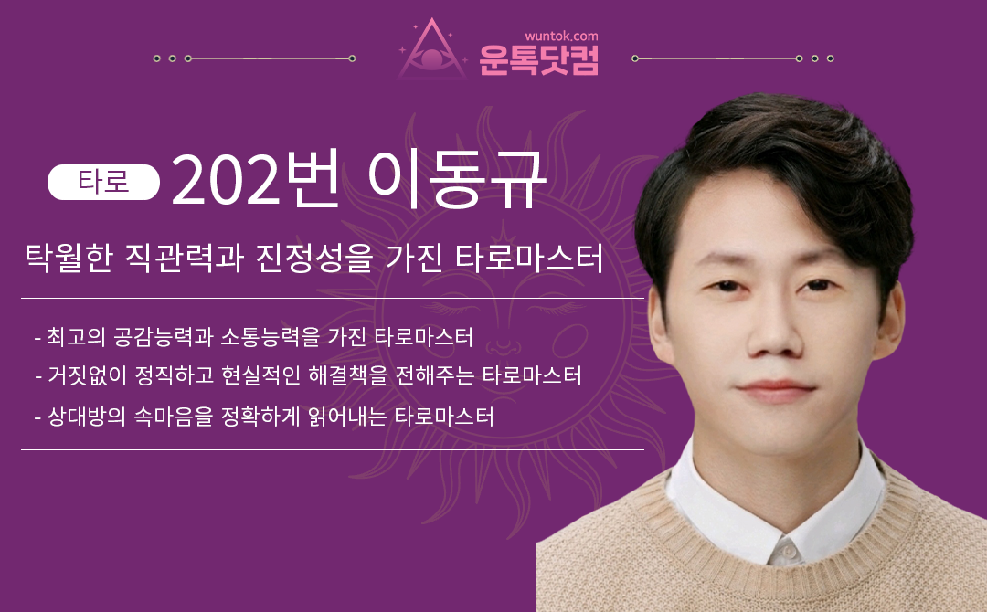 운톡닷컴의 신규 타로마스터 이동규 선생님과 함께 마음 속 모든 고민을 해결해보세요!