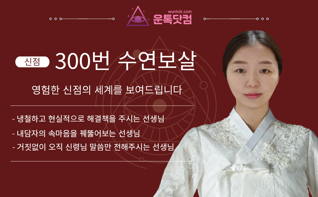 운톡닷컴의 신규 신점 상담사 수연보살 선생님과 함께 마음 속 모든 고민을 해결해보세요 !