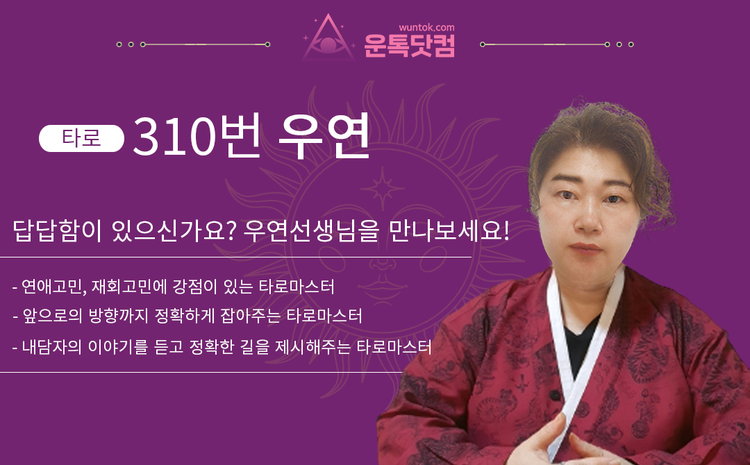 운톡닷컴의 신규 타로 마스터 우연 선생님과 함께 마음 속 모든 고민을 해결해보세요 !