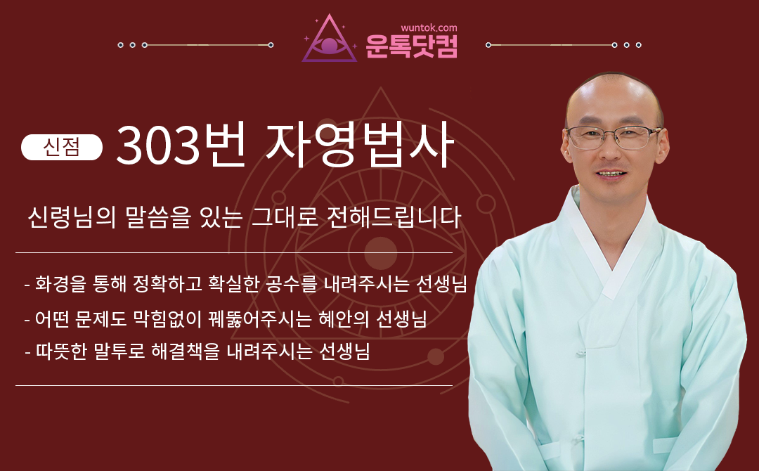 운톡닷컴의 신규 신점마스터 자영법사 선생님과 함께 마음 속 모든 고민을 해결해보세요!