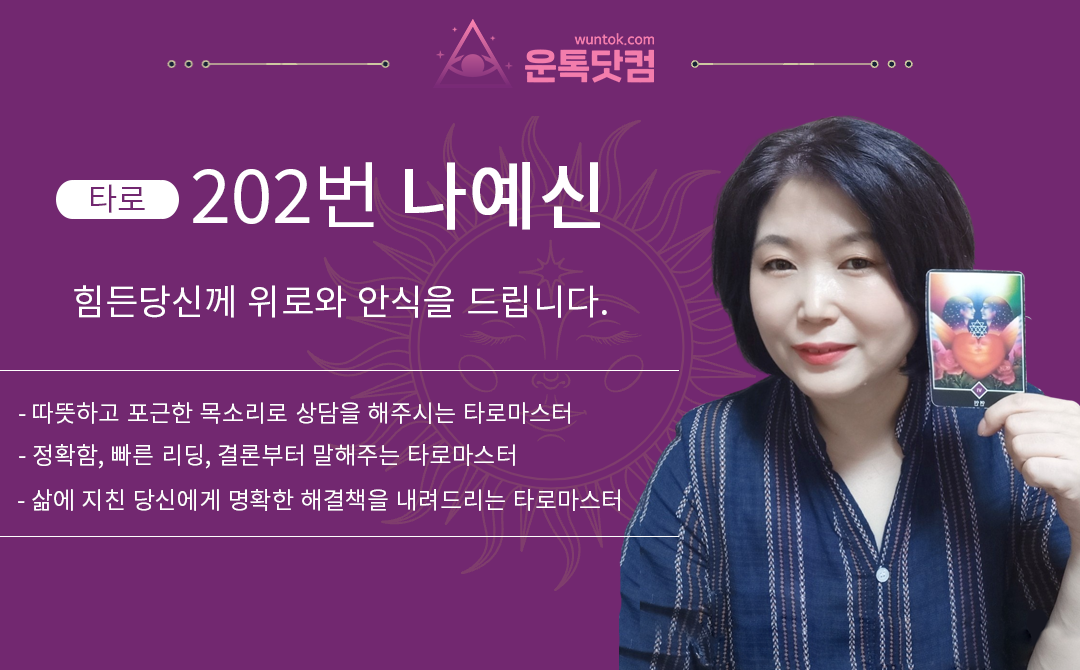 운톡닷컴의 신규 타로마스터 나예신 선생님과 함께 마음 속 모든 고민을 해결해보세요!