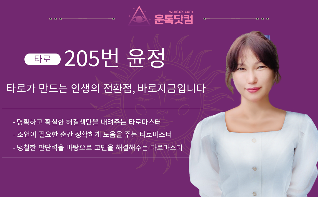 운톡닷컴의 신규 타로마스터 윤정 선생님과 함께 마음 속 모든 고민을 해결해보세요!