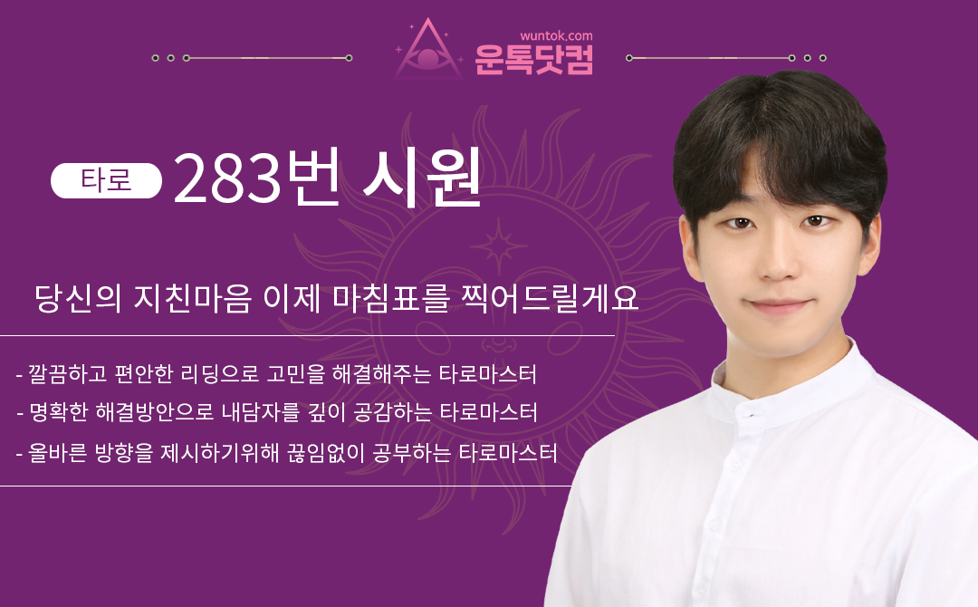 운톡닷컴의 신규 타로마스터 시원 선생님과 함께 마음 속 모든 고민을 해결해보세요!